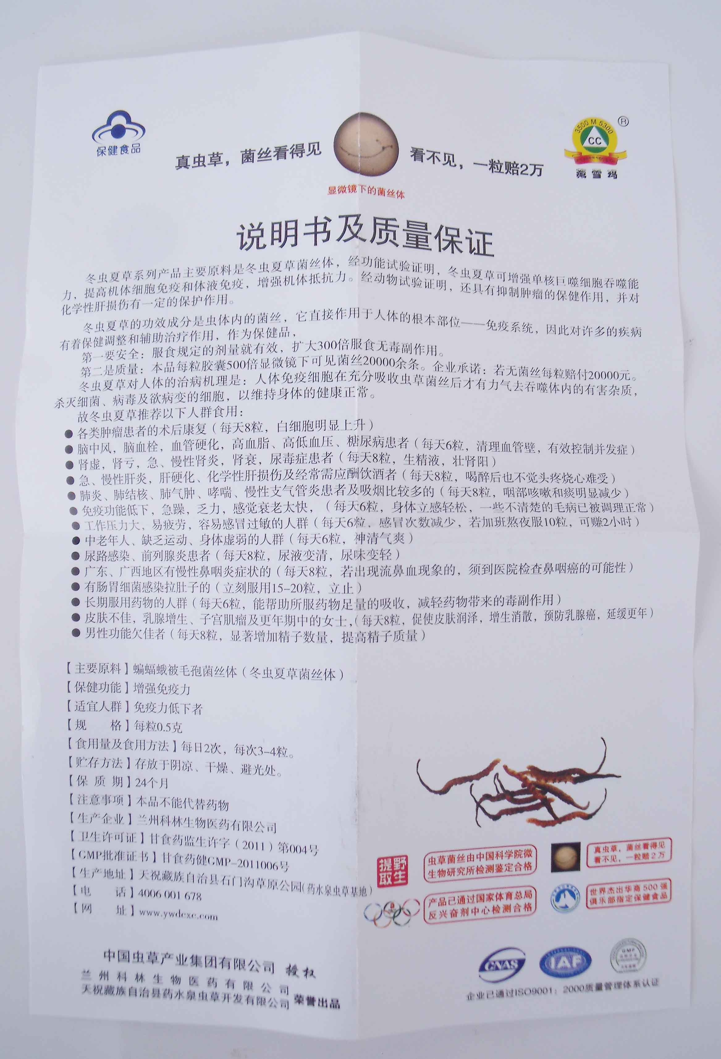 【商品名】:藏雪玛 冬虫夏草カプセル